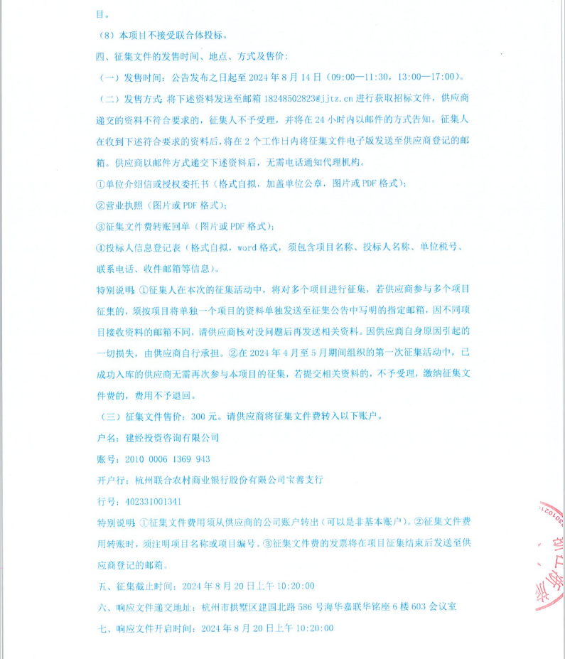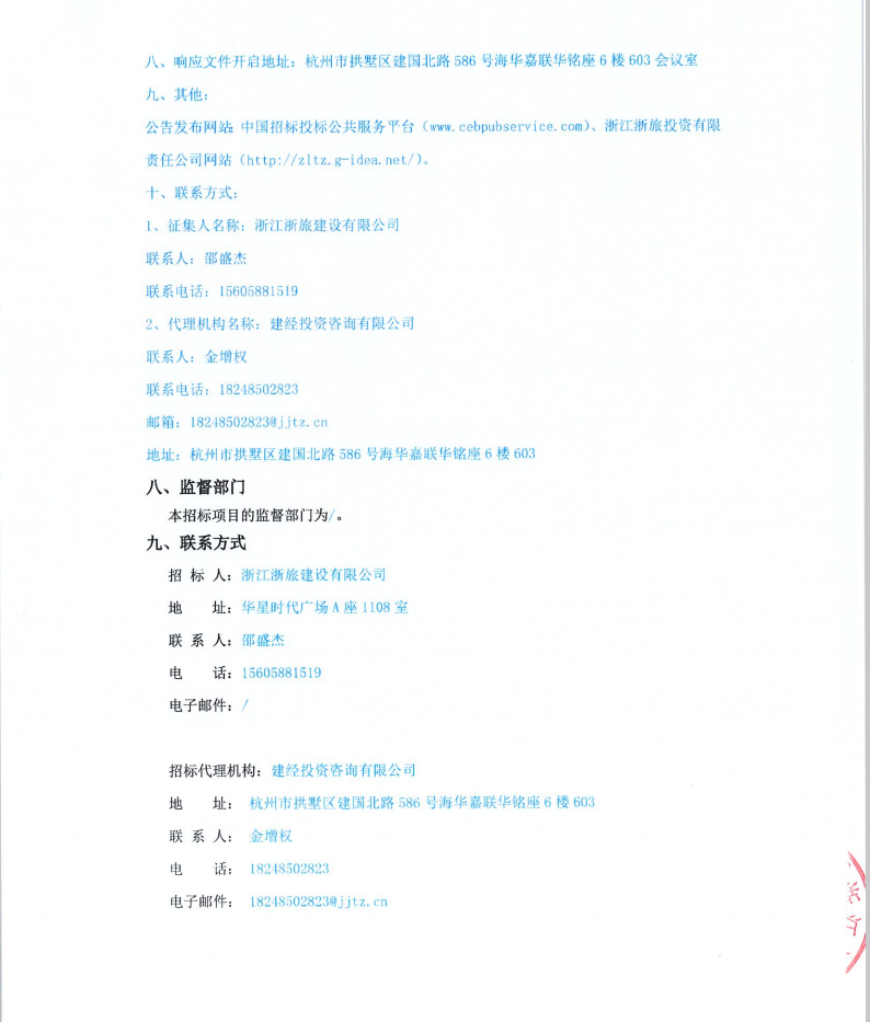 浙江浙旅建設有限公司分供商庫(市政類)補充征集公告