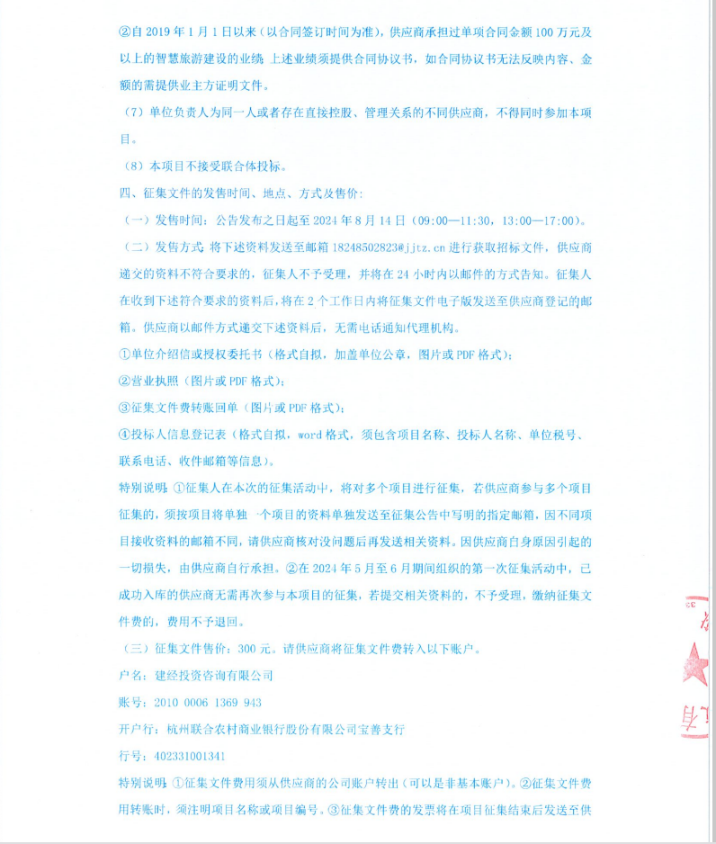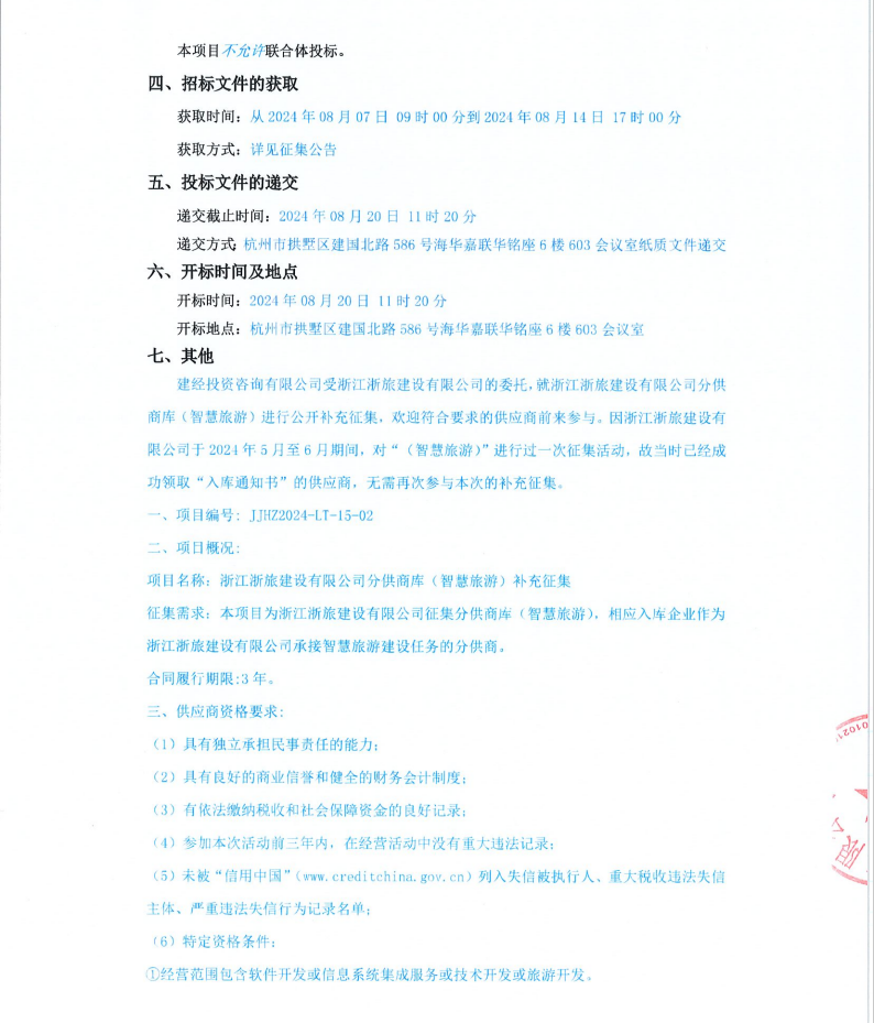 浙江浙旅建設(shè)有限公司分供商庫(kù)(智慧旅游)補(bǔ)充征集公告