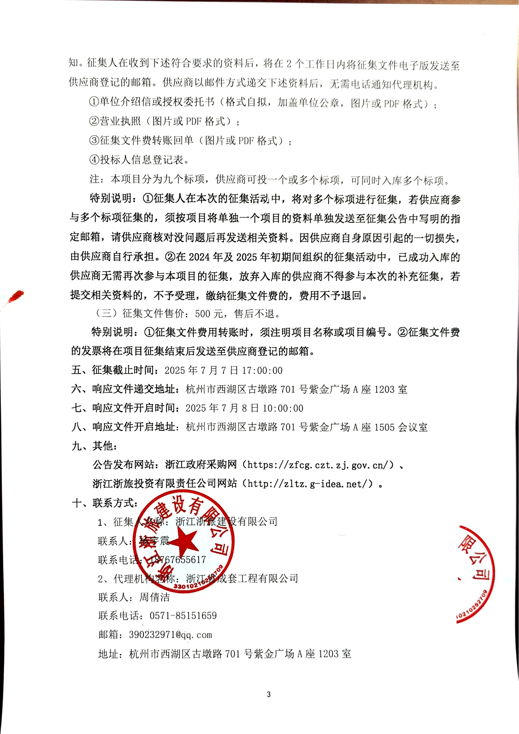 浙江浙旅建設有限公司供應商補充征集(四)征集公告